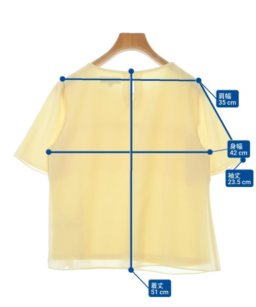 [Brand] Reflect [Type] Women's [Condition] Rank: A [Color] Yellow [Size] 9 (Medium) [Actual size] Width: 42cm Shoulder width: 35cm Sleeve length: 23.5cm Length: 51cm [Material] (Jersey part) 79% rayon, 21% polyester, (Chiffon part) 100% polyester [Country of origin] China [Other details] Season: Spring-Summer Pocket: None Translucency: None Fabric thickness: normal Lining: None Elasticity: None Gloss: None Opening and closing: button |