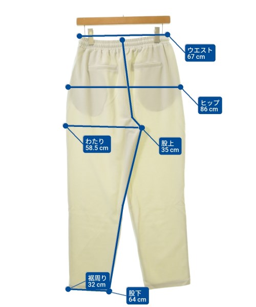 [Brand] OPAQUE.CLIP [Type] Women's [Condition] Rank: Like new [Color] Ivory [Size] 42 (Large) [Actual size] Waist:67cm Hem circumference: 32cm Hip:86cm Crossing: 58.5cm Rise: 35cm Inseam: 64cm [Material] 95% polyester, 5% polyurethane [Country of origin] China [Other details] Season: Spring-Summer Pockets: Yes Outside Pockets: 4 Translucency: None Fabric thickness: normal Lining: None Elasticity: Yes Gloss: None Opening and closing: None |