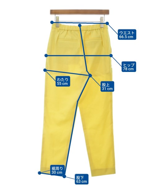[Brand] MACKINTOSH PHILOSOPHY [Type] Women's [Condition] Rank: B [Color] Yellow [Size] 38 (Medium) [Actual size] Waist: 66.5cm Hem circumference: 30cm Hip:78cm Crossing:55cm Rise: 31cm Inseam:63cm [Material] 80% polyester, 15% cotton, 5% linen [Country of Origin] Bangladesh [Comment] The waist is adjustable with elastic. [Other details] Season: Spring-Summer Pockets: Yes Outside Pockets: 4 Translucency: Yes Fabric thickness: normal Lining: None Elasticity: Yes Gloss: None Opening and closing: zipper Pattern: Plain |