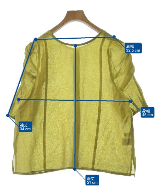 [Brand] fredy emue [Type] Women's [Condition] Rank: B [Color] Yellow-green [Size] 38 (Medium) [Actual size] Width: 46cm Shoulder width: 32.5cm Sleeve length: 34cm Length: 51cm [Material] 80% recycled fiber (cellulose), 20% polyester [Country of origin] China [Other details] Season: Spring-Summer Pocket: None Translucency: Yes Fabric thickness: normal Lining: None Elasticity: None Gloss: Yes Opening and closing: button |