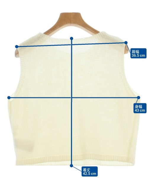 [Brand] SENSE OF PLACE by URBAN RESEARCH [Type] Women's [Condition] Rank: B Details: Neck caught [Color] Ivory [Size] ONE [Actual size] Width: 43cm Shoulder width: 36.5cm Length: 42.5cm [Material] 84% acrylic, 16% polyester [Country of origin] China [Other details] Season: Spring-Summer Pocket: None Translucency: Yes Fabric thickness: normal Lining: None Elasticity: Yes Gloss: None Opening and closing: None |