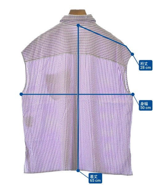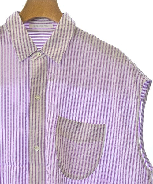[Brand] GALERIE VIE [Type] Women's [Condition] Rank: B [Color] Purple x white (stripes) [Size] 36 (Medium) [Actual size] Width: 50cm Sleeve length: 28cm Length: 65cm [Material] 100% recycled fiber (cellulose) [Country of origin] Japan [Other details] Season: Spring-Summer Pocket: Yes Outside pocket: 1 Translucency: None Fabric thickness: normal Lining: None Elasticity: None Gloss: None Opening and closing: button |