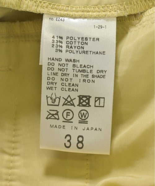 [Brand] IENA [Type] Women's [Condition] Rank: A [Color] Yellow [Size] 38 (Medium) [Actual size] Waist:73cm Hem circumference: 38cm Hip:87cm Crossing:54cm Rise: 33cm Inseam: 63.5cm Material: 41% polyester, 33% cotton, 23% rayon, 3% polyurethane [Country of origin] Japan [Other details] Season: Autumn-Winter Pockets: Yes Outside Pockets: 4 Translucency: None Fabric thickness: normal Lining: None Elasticity: Yes Gloss: None Opening and closing: zipper |
