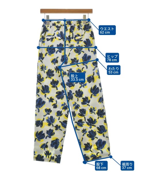 [Brand] IENA [Type] Women's [Condition] Rank: B [Color] White x Navy x Yellow (Floral Pattern) [Size] 36 (S rank) [Actual size] Waist:62cm Hem circumference: 37cm Hip:78cm Crossing:53cm Rise: 33.5cm Inseam:68cm [Material] (Outer and lining) 100% polyester [Country of origin] Japan [Comments] The waist can be adjusted using elastic or a drawstring. [Other details] Season: Spring-Summer Pockets: Yes Outside Pockets: 4 Translucency: None Fabric thickness: normal Lining: Yes Elasticity: None Gloss: None Opening and closing: None Pattern: Plain |