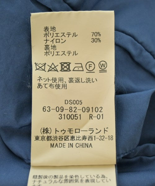 [Brand] TOMORROWLAND [Type] Men's [Condition] Rank: C Details: Some stains [Color] Blue [Size] M [Actual size] Width: 57cm Shoulder width: 47.5cm Sleeve length:66cm Length: 95cm Material: 70% polyester, 30% nylon, (lining) polyester [Country of origin] China [Other details] Season: Spring-Summer Pockets: Yes, 2 outside pockets, 2 inside pockets Translucency: None Fabric thickness: normal Lining: Yes Elasticity: None Gloss: None Opening and closing: button |