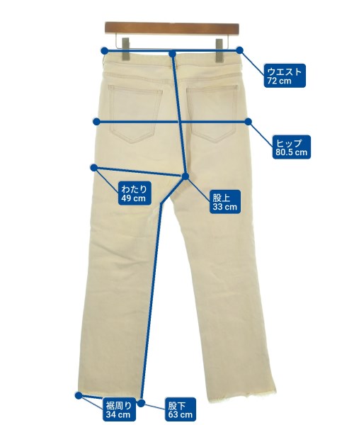 [Brand] Spick and Span [Type] Women's [Condition] Rank: B Details: Overall rubbed [Color] Ivory [Size] 40 (M) [Actual size] Waist:72cm Hem circumference: 34cm Hip:80.5cm Crossing:49cm Rise: 33cm Inseam:63cm [Material] 98% cotton, 2% polyurethane [Country of origin] China [Comments] There is a slit at the hem. [Other details] Season: Spring-Summer Pockets: Yes Outside Pockets: 5 Translucency: None Fabric thickness: normal Lining: None Elasticity: Yes Gloss: None Opening and closing: zipper |