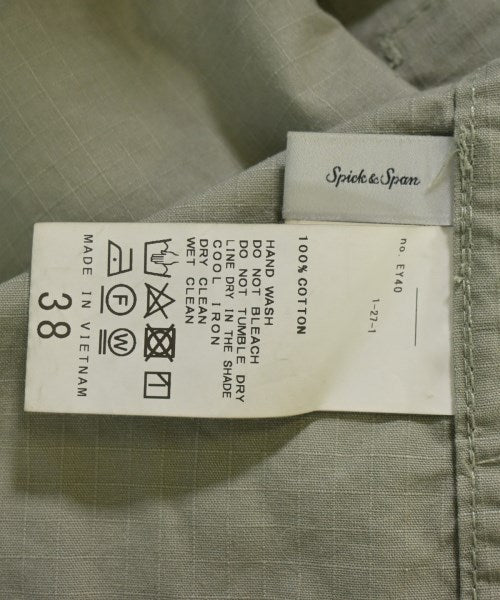 [Brand] Spick and Span [Type] Women's [Condition] Rank: A [Color] Khaki [Size] 38 (Medium) [Actual size] Width: 52cm Shoulder width: 50cm Sleeve length: 49.5cm Length: 71cm [Material] 100% cotton [Country of origin] Vietnam [Other details] Season: All season Pockets: Yes Outside Pockets: 2 Translucency: None Fabric thickness: normal Lining: None Elasticity: None Gloss: None Opening and closing: button |