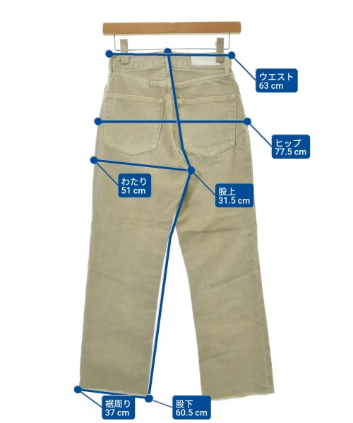 [Brand] Mila Owen [Type] Women's [Condition] Rank: B Details: Overall rubbed [Color] Beige (denim) [Size] 0 (S size) [Actual size] Waist:63cm Hem circumference: 37cm Hip:77.5cm Crossing:51cm Rise: 31.5cm Inseam: 60.5cm [Material] 100% cotton, (leather part) cowhide [Country of origin] China [Other details] Season: All season Pockets: Yes Outside Pockets: 5 Translucency: None Fabric thickness: normal Lining: None Elasticity: None Gloss: None Opening and closing: zipper |