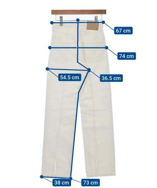 [Brand] Mila Owen [Type] Women's [Condition] Rank: B [Color] White (denim) [Size] 1 (Medium) [Actual size] Waist:67cm Hem circumference: 38cm Hip:74cm Crossing: 54.5cm Rise: 36.5cm Inseam:73cm [Material] 100% cotton [Country of origin] China [Other details] Season: Spring-Summer Pockets: Yes Outside Pockets: 5 Translucency: None Fabric thickness: normal Lining: None Elasticity: None Gloss: None Opening and closing: zipper |