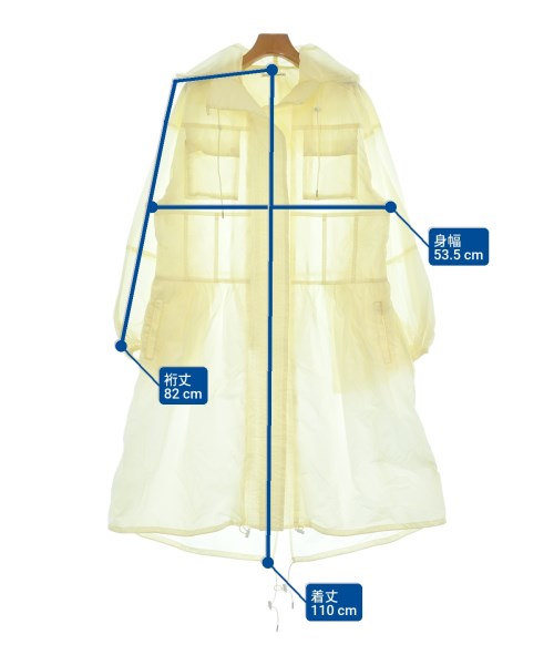 [Brand] AKANE UTSUNOMIYA [Type] Women's [Condition] Rank: B [Color] Ivory [Size] 38 (Medium) [Actual size] Width: 53.5cm Sleeve length: 82cm Length: 110cm [Material] 100% nylon, (separate fabric, padding) 100% polyester [Country of origin] China [Other details] Season: Spring-Summer Pockets: Yes Outside Pockets: 4 Translucency: Yes Fabric thickness: normal Lining: None Elasticity: None Gloss: None Opening and closing: button Opening and shutting: Double zip Pattern: Plain |