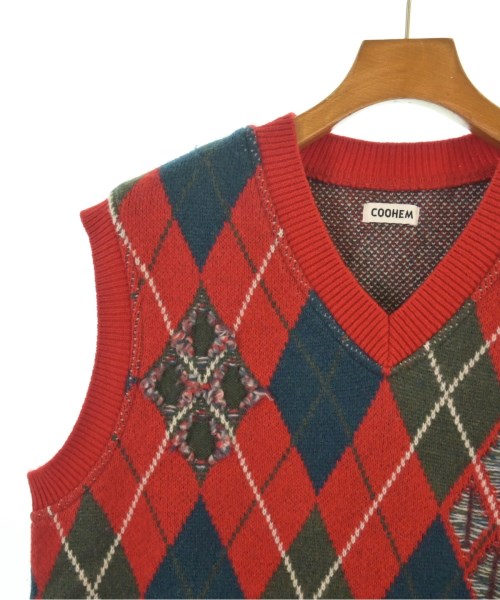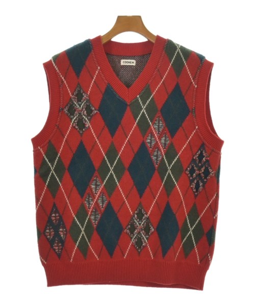 [Brand] Coohem [Type] Men's [Condition] Rank: B Details: Fluffing throughout [Color] Red x Navy x Khaki etc. (Argyle) [Size] M [Actual size] Width: 53cm Shoulder width: 42cm Length: 65cm [Material] 100% wool [Country of origin] Japan [Other details] Season: Autumn-Winter Pocket: None Translucency: None Fabric thickness: normal Lining: None Elasticity: Yes Gloss: None Opening and closing: None |