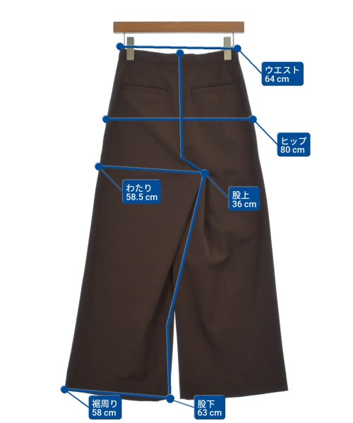 [Brand] MURRAL [Type] Women's [Condition] Rank: B [Color] Brown [Size] 36 (S rank) [Actual size] Waist:64cm Hem circumference: 58cm Hip:80cm Crossing: 58.5cm Rise: 36cm Inseam:63cm [Material] 68% polyester, 32% wool, (lining) 100% polyester [Country of origin] Japan [Other details] Season: Autumn-Winter Pockets: Yes Outside Pockets: 4 Translucency: None Fabric thickness: normal Lining: Yes Elasticity: None Gloss: None Opening and closing: zipper Pattern: Plain Length: Long length |