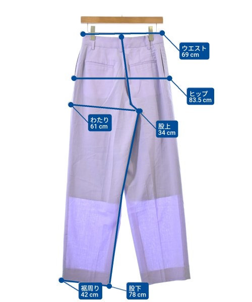 [Brand] CINOH [Type] Women's [Condition] Rank: C Details: There is a similar stain on the hem. No quality label [Color] Purple [Size] - (Medium) [Actual size] Waist:69cm Hem circumference: 42cm Hip:83.5cm Crossing:61cm Rise: 34cm Inseam:78cm [Material] No quality indication [Other details] Season: Spring-Summer Pockets: Yes Outside Pockets: 4 Translucency: None Fabric thickness: normal Lining: Yes Elasticity: None Gloss: None Opening and closing: zipper |