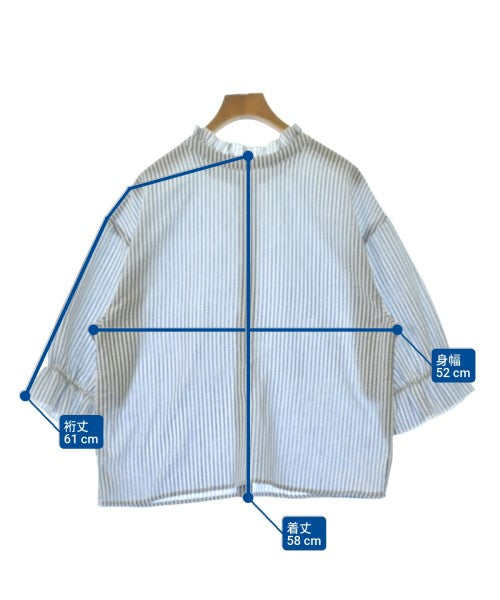 [Brand] Lugnoncure [Type] Women's [Condition] Rank: A [Color] White x Navy (stripes) [size] F [Actual size] Width: 52cm Sleeve length: 61cm Length: 58cm [Material] 75% polyester, 25% cotton [Country of origin] China [Other details] Season: Spring-Summer Pocket: None Translucency: Yes Fabric thickness: normal Lining: None Elasticity: None Gloss: None Opening and closing: button |