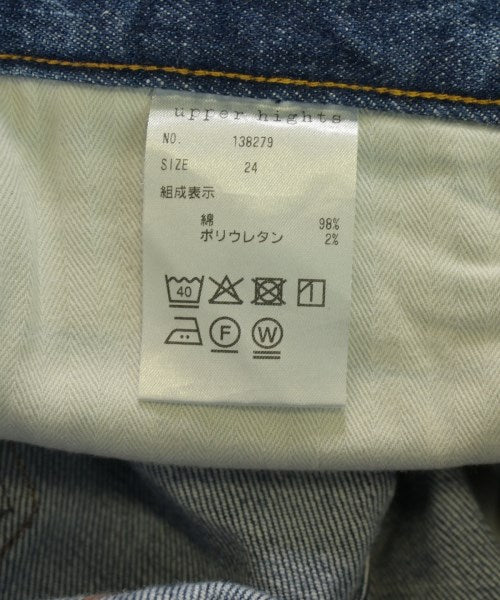 [Brand] upper hights [Type] Women's [Condition] Rank: B Details: Overall rubbed [Color] Indigo (Denim) [Size] 24 (S rank) [Actual size] Waist:73cm Hem circumference: 29cm Hip:85cm Crossing:54cm Rise:29cm Inseam: 65cm [Material] 98% cotton, 2% polyurethane [Country of origin] Japan [Other details] Season: All season Pockets: Yes Outside Pockets: 5 Translucency: None Fabric thickness: normal Lining: None Elasticity: Yes Gloss: None Opening and closing: zipper |