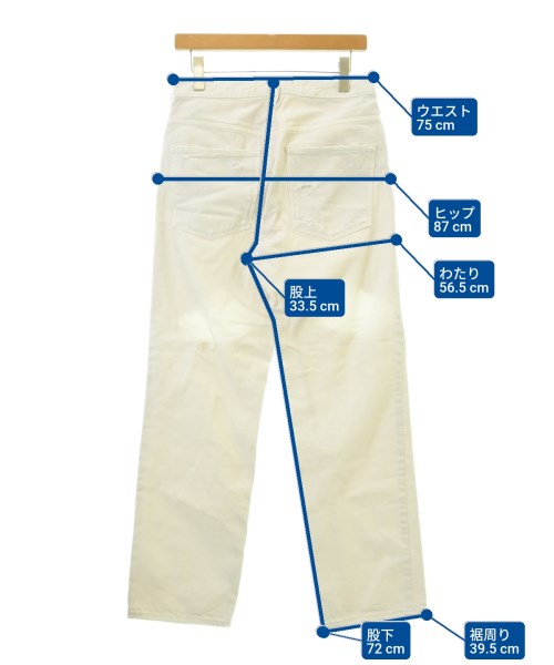 [Brand] upper hights [Type] Women's [Condition] Rank: A [Color] Off-white [Size] 24 (S rank) [Actual size] Waist:75cm Hem circumference: 39.5cm Hip:87cm Crossing: 56.5cm Rise: 33.5cm Inseam:72cm [Material] 100% cotton [Country of origin] Japan [Other details] Season: All season Pockets: Yes Outside Pockets: 5 Translucency: None Fabric thickness: normal Lining: None Elasticity: None Gloss: None Opening and closing: zipper |