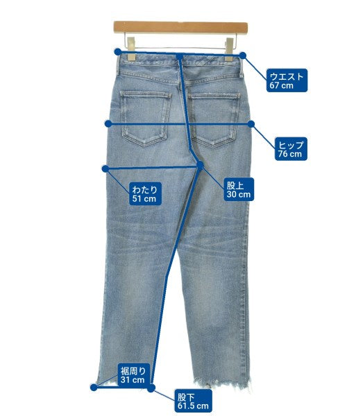 [Brand] upper hights [Type] Women's [Condition] Rank: B [Color] Indigo (Denim) [Size] 22 (XS) [Actual size] Waist:67cm Hem circumference: 31cm Hip:76cm Crossing:51cm Rise: 30cm Inseam:61.5cm [Material] 98% cotton, 2% polyurethane [Country of origin] Japan [Other details] Season: All season Pockets: Yes Outside Pockets: 5 Translucency: None Fabric thickness: normal Lining: None Elasticity: Yes Gloss: None Opening and closing: zipper |