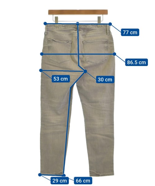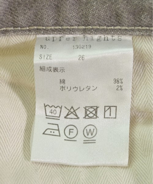 [Brand] upper hights [Type] Women's [Condition] Rank: B Details: There is dirt on the left knee [Color] Beige (denim) [Size] 26 (Medium) [Actual size] Waist:77cm Hem circumference: 29cm Hip:86.5cm Crossing:53cm Rise: 30cm Inseam: 66cm [Material] 98% cotton, 2% polyurethane [Country of origin] Japan [Other details] Season: All season Pockets: Yes Outside Pockets: 5 Translucency: None Fabric thickness: normal Lining: None Elasticity: Yes Gloss: None Opening and closing: zipper |