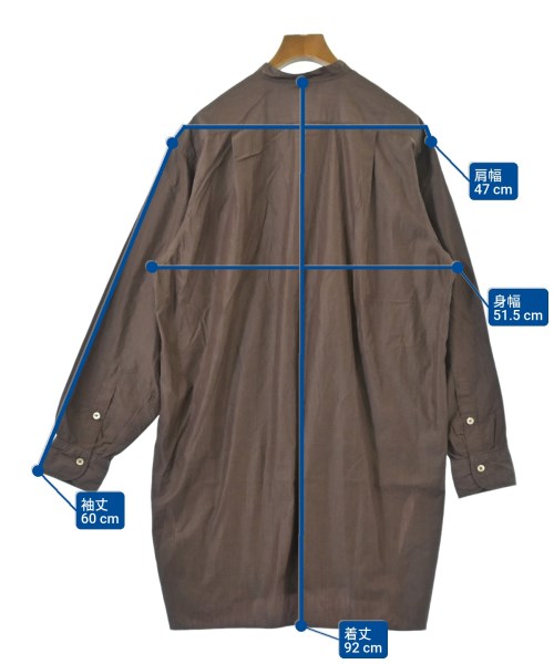 [Brand] Kaptain Sunshine [Type] Women's [Condition] Rank: B [Color] Brown [Size] 36 (S rank) [Actual size] Width: 51.5cm Shoulder width: 47cm Sleeve length: 60cm Length: 92cm [Material] 100% cotton [Country of origin] Japan [Other details] Season: Spring-Summer Pocket: None Translucency: None Fabric thickness: normal Lining: None Elasticity: None Gloss: None Opening and closing: button Sleeve length: long sleeve Pattern: Plain |