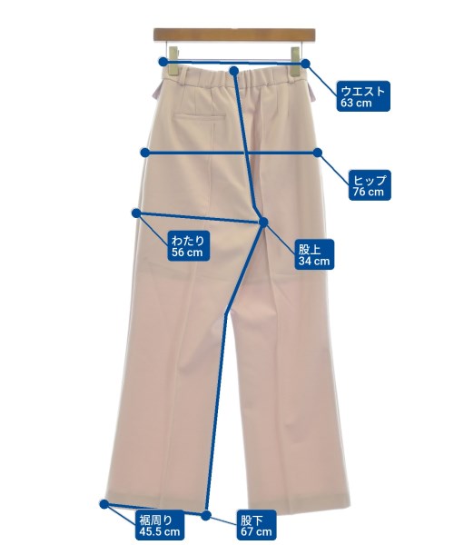 [Brand] emmi atelier [Type] Women's [Condition] Rank: B 【color: pink [Size] 0 (approximately XS) [Actual size] Waist:63cm Hem circumference: 45.5cm Hip:76cm Crossing:56cm Rise: 34cm Inseam:67cm [Material] 90% polyester, 10% polyurethane, (lining) 100% polyester [Country of origin] China [Comment] Model: Pintuck Pants Model Number: 13WFP221060 [Other details] Season: Spring-Summer Pockets: Yes External pockets: 3 Translucency: None Fabric thickness: normal Lining: Yes Elasticity: Yes Gloss: None Opening and closing: zipper Pattern: Plain Length: Long length |