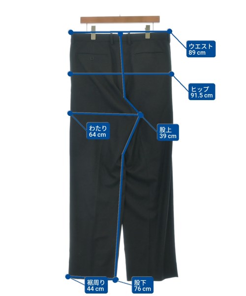 [Brand] AURALEE [Type] Men's [Condition] Rank: B Details: Some scuffs here and there [Color] Black [Size] 5 (Large) [Actual size] Waist:89cm Hem circumference: 44cm Hip: 91.5cm Crossing:64cm Rise:39cm Inseam:76cm [Material] 100% wool, (lining) 100% cupra [Country of origin] Japan [Comments] The waist can be adjusted with a drawstring. [Other details] Season: Autumn-Winter Pockets: Yes Outside Pockets: 4 Translucency: None Fabric thickness: normal Lining: Yes Elasticity: None Gloss: None Opening and closing: zipper Pattern: Plain Length: Long length |