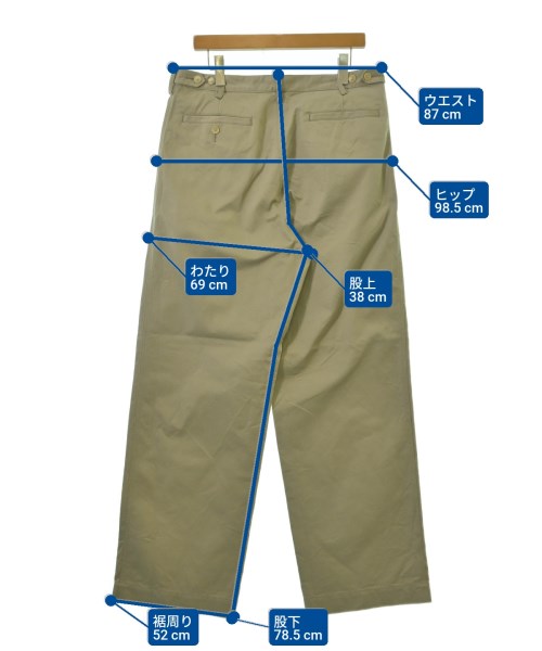 [Brand] AURALEE [Type] Men's [Condition] Rank: B [Color] Beige [Size] 5 (Large) [Actual size] Waist:87cm Hem circumference: 52cm Hip:98.5cm Crossing:69cm Rise: 38cm Inseam:78.5cm [Material] 100% cotton [Country of origin] Japan [Comment] WASHED FINX CHINO ONE-TUCK PANTS [Other details] Season: Spring-Summer Pockets: Yes Outside Pockets: 5 Translucency: None Fabric thickness: normal Lining: None Elasticity: None Gloss: None Opening and closing: zipper Pattern: Plain Length: Long length |