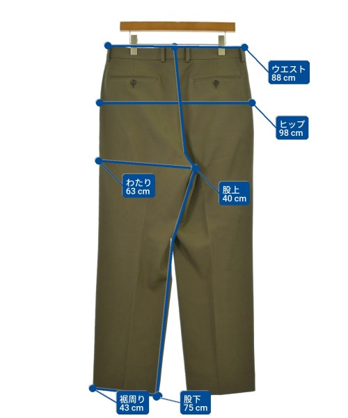 [Brand] AURALEE [Type] Men's [Condition] Rank: B [Color] Khaki [Size] 5 (Large) [Actual size] Waist:88cm Hem circumference: 43cm Hip:98cm Crossing:63cm Rise: 40cm Inseam:75cm [Material] 100% wool, (lining) 100% cupra [Country of origin] Japan [Other details] Season: Autumn-Winter Pockets: Yes Outside Pockets: 4 Translucency: None Fabric thickness: normal Lining: None Elasticity: None Gloss: None Opening and closing: zipper Pattern: Plain Length: Long length |