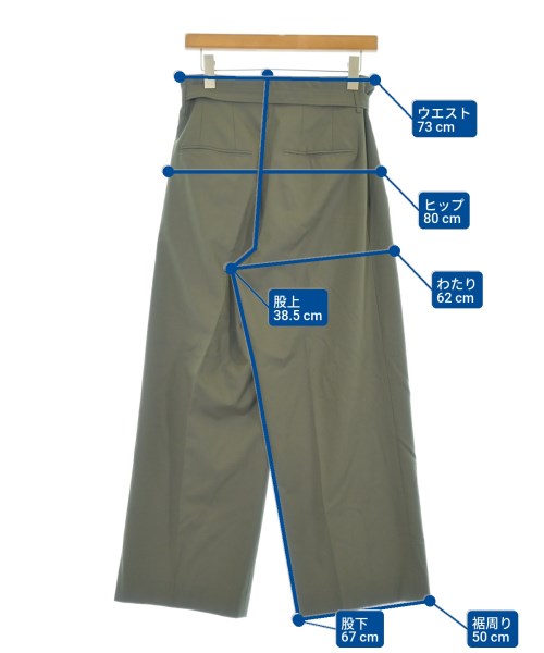 [Brand] AURALEE [Type] Women's [Condition] Rank: B [Color] Khaki [Size] 0 (S size) [Actual size] Waist:73cm Hem circumference: 50cm Hip:80cm Crossing:62cm Rise: 38.5cm Inseam:67cm [Accessories] Belt [Material] 100% wool, (lining) 100% cupra [Country of origin] Japan [Other details] Season: Autumn-Winter Pockets: Yes Outside Pockets: 4 Translucency: None Fabric thickness: normal Lining: Yes Elasticity: None Gloss: None Opening and closing: button Opening and closing: zipper Closure: Hook and eye |