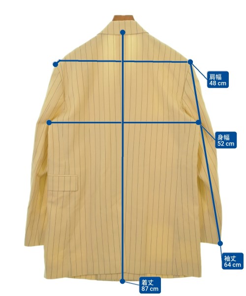 [Brand] CHRISTIAN DADA [Type] Men's [Condition] Rank: B Details: Stain around the neck [Color] Beige x Navy (Stripes) [Size] 46 (M) [Actual size] Width: 52cm Shoulder width: 48cm Sleeve length:64cm Length:87cm [Material] 100% wool, (lining) 100% cupra, (other fabric) 100% cotton [Country of origin] Japan [Other details] Season: Spring-Summer Pockets: Yes Outside Pockets: 3, Inside Pockets: 2 Translucency: None Fabric thickness: normal Lining: Yes Elasticity: None Gloss: None Opening and closing: button Pattern: Plain |