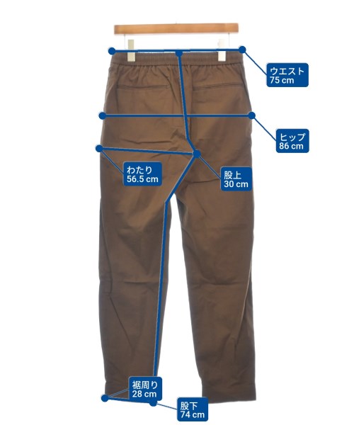 [Brand] Theory [Type] Men's [Condition] Rank: B [Color] Brown [Size] 30 (Medium) [Actual size] Waist:75cm Hem circumference: 28cm Hip:86cm Crossing: 56.5cm Rise: 30cm Inseam:74cm [Material] 96% cotton, 4% polyurethane [Country of origin] Türkiye [Comments] The waist can be adjusted using elastic or a drawstring. [Other details] Season: Spring-Summer Pockets: Yes Outside Pockets: 4 Translucency: None Fabric thickness: normal Lining: None Elasticity: Yes Gloss: None Opening and closing: zipper |