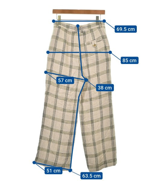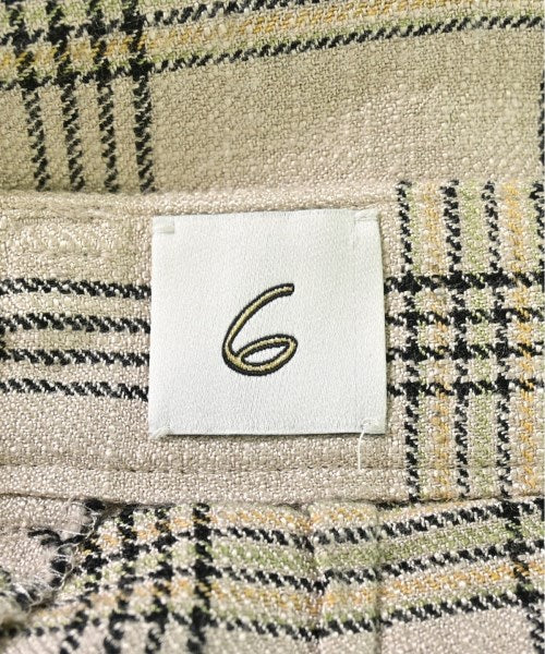 [Brand] 6(ROKU) [Type] Women's [Condition] Rank: B Details: Overall rubbed [Color] Beige x black x yellow etc. (check) [Size] 38 (Medium) [Actual size] Waist: 69.5cm Hem circumference: 51cm Hip:85cm Crossing:57cm Rise: 38cm Inseam: 63.5cm [Material] 91% rayon, 8% nylon, 1% silk [Country of origin] Japan [Other details] Season: Spring-Summer Pockets: Yes External pockets: 3 Translucency: None Fabric thickness: normal Lining: None Elasticity: None Gloss: None Opening and closing: zipper |