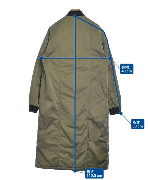 [Brand] YASUTOSHI EZUMI [Type] Women's [Condition] Rank: B Details: Size tag Fray included [Color] Khaki [Size] S [Actual size] Width: 49cm Sleeve length: 83cm Length: 110.5cm [Material] (Outer fabric, padding) 100% polyester, (Rib) 55% acrylic, 35% wool, 10% polyester, (Lining) 100% cupra [Country of origin] Japan [Other details] Season: Autumn-Winter Pockets: Yes Outside Pockets: 2 Translucency: None Fabric thickness: normal Lining: Yes Elasticity: None Gloss: None Opening and closing: zipper |