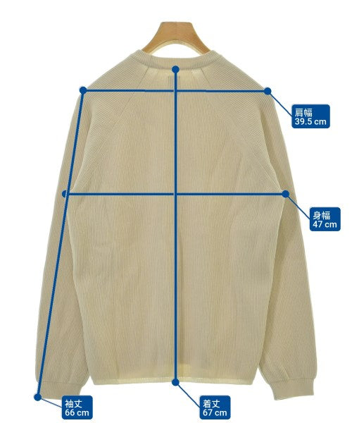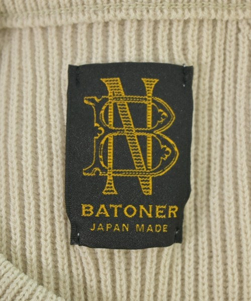 [Brand] BATONER [Type] Men's [Condition] Rank: B Details: There are some snags on the front [Color] Beige [Size] 2 (Medium) [Actual size] Width: 47cm Shoulder width: 39.5cm Sleeve length:66cm Length:67cm [Material] 100% wool [Country of origin] Japan [Other details] Season: Autumn-Winter Pocket: None Translucency: None Fabric thickness: normal Lining: None Elasticity: Yes Gloss: None Opening and closing: None Neck: crew neck Sleeve length: long sleeve Pattern: Plain Gauge: High Gauge |