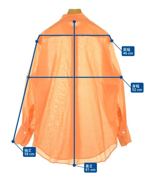[Brand] H BEAUTY&YOUTH [Type] Women's [Condition] Rank: A [Color] Orange [Size] S [Actual size] Width: 52cm Shoulder width: 46cm Sleeve length: 58cm Length: 81cm [Material] 100% cotton [Country of origin] Japan [Other details] Season: Spring-Summer Pocket: None Translucency: Yes Fabric thickness: thin Lining: None Elasticity: Yes Gloss: None Opening and closing: button |