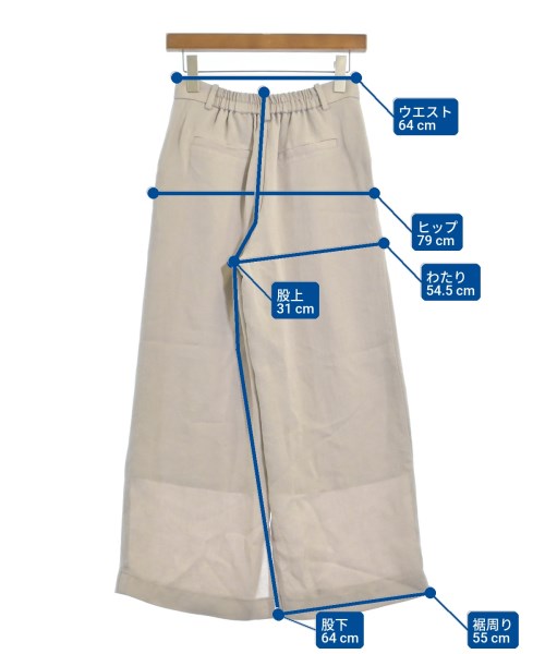 [Brand] STUDIOUS [Type] Women's [Condition] Rank: B Details: Overall rubbed [Color] Beige [Size] 1 (S size) [Actual size] Waist:64cm Hem circumference: 55cm Hip:79cm Crossing: 54.5cm Rise: 31cm Inseam: 64cm [Material] 100% triacetate, (lining) 100% polyester [Country of origin] Japan [Comment] The waist is adjustable with elastic. [Other details] Season: Spring-Summer Pockets: Yes Outside Pockets: 2 Translucency: None Fabric thickness: normal Lining: Yes Elasticity: None Gloss: None Opening and closing: zipper |