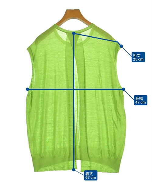 [Brand] BLAMINK [Type] Women's [Condition] Rank: B [Color] Green [Size] 38 (Medium) [Actual size] Width: 47cm Sleeve length: 25cm Length:67cm [Material] 58% cashmere, 29% silk, 13% plant fiber (hemp) [Country of origin] Japan [Other details] Season: Autumn-Winter Pocket: None Translucency: Yes Fabric thickness: thin Lining: None Elasticity: Yes Gloss: None Opening and closing: None Neck: crew neck Pattern: Plain Gauge: High Gauge |