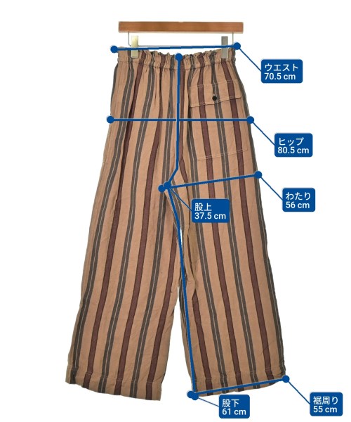 [Brand] Prefer SHIPS [Type] Women's [Condition] Rank: B [Color] Brown x black x red (stripes) [Size] - (Medium) [Actual size] Waist: 70.5cm Hem circumference: 55cm Hip:80.5cm Crossing:56cm Rise: 37.5cm Inseam:61cm [Material] 50% linen, 50% rayon [Country of origin] China [Comments] The waist can be adjusted using elastic or a drawstring. [Other details] Season: Spring-Summer Pockets: Yes External pockets: 3 Translucency: None Fabric thickness: normal Lining: None Elasticity: None Gloss: None Opening and closing: None |