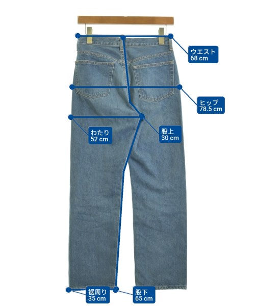 [Brand] SERGE de bleu [Type] Women's [Condition] Rank: B [Color] Blue (denim) [Size] 25 (S size) [Actual size] Waist:68cm Hem circumference: 35cm Hip:78.5cm Crossing:52cm Rise: 30cm Inseam: 65cm [Material] 100% cotton [Country of origin] Japan [Other details] Season: All season Pockets: Yes Outside Pockets: 5 Translucency: None Fabric thickness: normal Lining: None Elasticity: None Gloss: None Opening and closing: zipper |