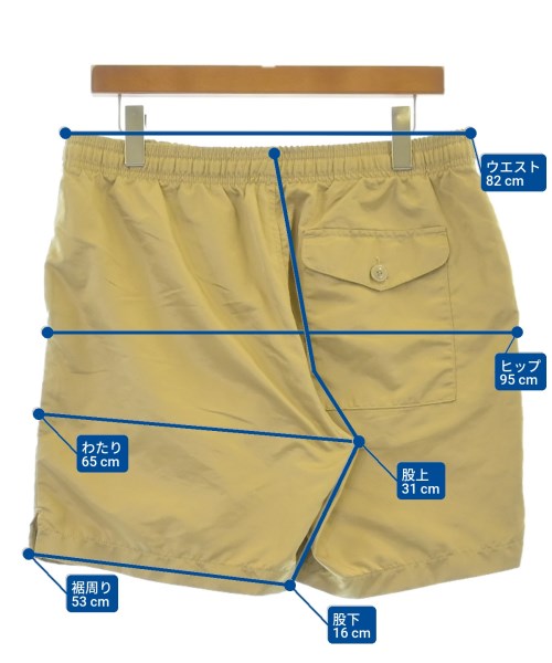[Brand] SAVE KHAKI UNITED [Type] Men's [Condition] Rank: B [Color] Beige [Size] L [Actual size] Waist:82cm Hem circumference: 53cm Hip:95cm Crossing:65cm Rise: 31cm Inseam: 16cm [Material] 100% polyester 【Country of Origin】United States [Other details] Season: Spring-Summer Pockets: Yes External pockets: 3 Translucency: None Fabric thickness: normal Lining: None Elasticity: None Gloss: Yes Opening and closing: None |