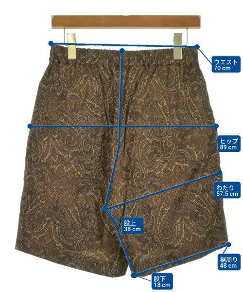 [Brand] URU [Type] Men's [Condition] Rank: Like new [Color] Brown x Beige x Orange (Paisley) [Size] 1 (S size) [Actual size] Waist: 70cm Hem circumference: 48cm Hip:89cm Crossing: 57.5cm Rise: 38cm Inseam: 18cm [Material] 65% rayon, 35% cotton [Country of origin] Japan [Comments] The waist can be adjusted using elastic or a drawstring. [Other details] Season: Spring-Summer Pockets: Yes Total outside pockets: 4 Translucency: None Fabric thickness: normal Lining: None Elasticity: None Gloss: None Opening and closing: zipper |