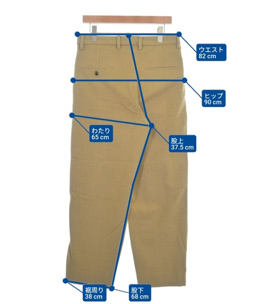 [Brand] URU [Type] Men's [Condition] Rank: Like new [Color] Beige [Size] 2 (Medium) [Actual size] Waist:82cm Hem circumference: 38cm Hip: 90cm Crossing:65cm Rise: 37.5cm Inseam:68cm Material: 86% wool, 11% nylon, 3% acrylic; (lining) 55% cupra, 45% cotton [Country of origin] Japan [Comment] Model: WOOL TWEED - 1 TUCK PANTS Model number: 22FWT02 [Other details] Season: Autumn-Winter Pockets: Yes Outside Pockets: 4 Translucency: None Fabric thickness: normal Lining: Yes Elasticity: None Gloss: None Opening and closing: zipper Opening and closing: None Pattern: Plain Length: Long length |