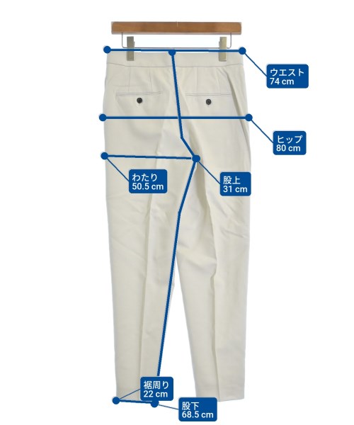 [Brand] ebure [Type] Women's [Condition] Rank: Like new [Color] Off-white [Size] 38 (Medium) [Actual size] Waist:74cm Hem circumference: 22cm Hip:80cm Crossing: 50.5cm Rise: 31cm Inseam: 68.5cm [Material] 100% wool, (lining) 100% cupra [Country of origin] Japan [Other details] Season: Autumn-Winter Pockets: Yes Outside Pockets: 4 Translucency: Yes Fabric thickness: normal Lining: Yes Elasticity: None Gloss: None Opening and closing: zipper |