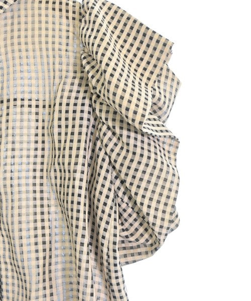 [Brand] eimy istoire [Type] Women's [Condition] Rank: B [Color] Beige x Black (Check) [size] F [Actual size] Width: 48cm Shoulder width: 28cm Sleeve length:13cm Length:67cm [Material] 100% polyester [Country of origin] China [Other details] Season: Spring-Summer Pocket: None Translucency: Yes Fabric thickness: normal Lining: None Elasticity: None Gloss: None Opening and closing: button Sleeve length: long sleeve Pattern: Plain |