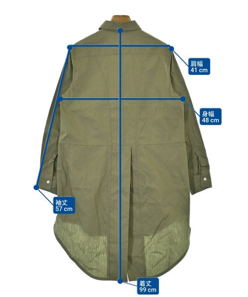 [Brand] COMME des GARCONS COMME des GARCONS [Type] Women's [Condition] Rank: B [Color] Khaki [Size] S [Actual size] Width: 48cm Shoulder width: 41cm Sleeve length: 57cm Length: 99cm [Material] 100% cotton [Country of origin] Japan [Other details] Season: All season Pocket: Yes Outside pocket: 1 Translucency: None Fabric thickness: normal Lining: None Elasticity: None Gloss: None Opening and closing: button |