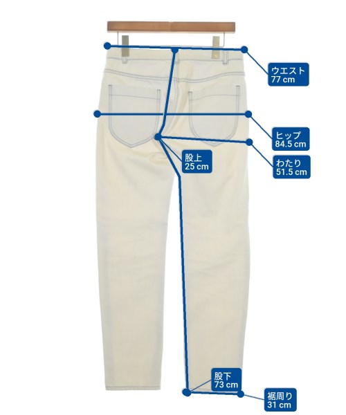 [Brand] Maison Margiela [Type] Men's [Condition] Rank: C Details: Quality label cannot be read [Color] White (denim) [Size] 44 (S size) [Actual size] Waist:77cm Hem circumference: 31cm Hip:84.5cm Crossing: 51.5cm Rise: 25cm Inseam:73cm [Material] Quality label unreadable [Other details] Season: All season Pockets: Yes Outside Pockets: 5 Translucency: None Fabric thickness: normal Lining: None Elasticity: None Gloss: None Opening and closing: button |