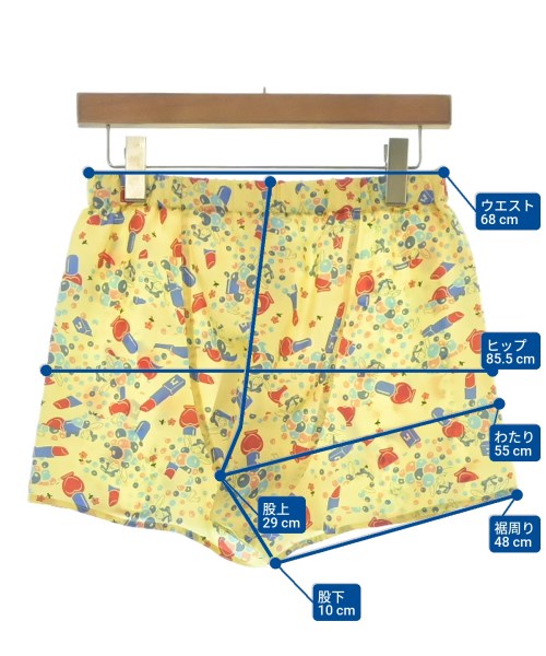 [Brand] Maison Margiela [Type] Women's [Condition] Rank: Like new [Color] Yellow x Red x Blue (all-over pattern) [Size] S [Actual size] Waist:68cm Hem circumference: 48cm Hip:85.5cm Crossing:55cm Rise:29cm Inseam: 10cm [Material] 100% silk [Country of origin] Italy [Other details] Season: Spring-Summer Pocket: None Translucency: None Fabric thickness: normal Lining: None Elasticity: None Gloss: None Opening and closing: button Pattern: patterned |