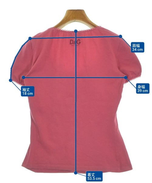 [Brand] D&G [Type] Women's [Condition] Rank: B 【color: pink [Size] S [Actual size] Width: 39cm Shoulder width: 34cm Sleeve length: 18cm Length: 53.5cm [Material] 94% cotton, 6% polyurethane [Country of origin] Italy [Other details] Season: Spring-Summer Pocket: None Translucency: None Fabric thickness: normal Lining: None Elasticity: Yes Gloss: None Opening and closing: None Neck: Other Sleeve length: half sleeve Pattern: printed logo |