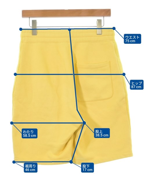 [Brand] ALEXANDER WANG [Type] Men's [Condition] Rank: A [Color] Yellow [Size] XS [Actual size] Waist:75cm Hem circumference: 46cm Hip:87cm Crossing: 58.5cm Rise: 38.5cm Inseam: 18cm [Material] 100% cotton [Country of origin] China [Comments] The waist can be adjusted using elastic or a drawstring. [Other details] Season: Spring-Summer Pockets: Yes External pockets: 3 Translucency: None Fabric thickness: normal Lining: None Elasticity: None Gloss: None Opening and closing: None Pattern: printed logo |