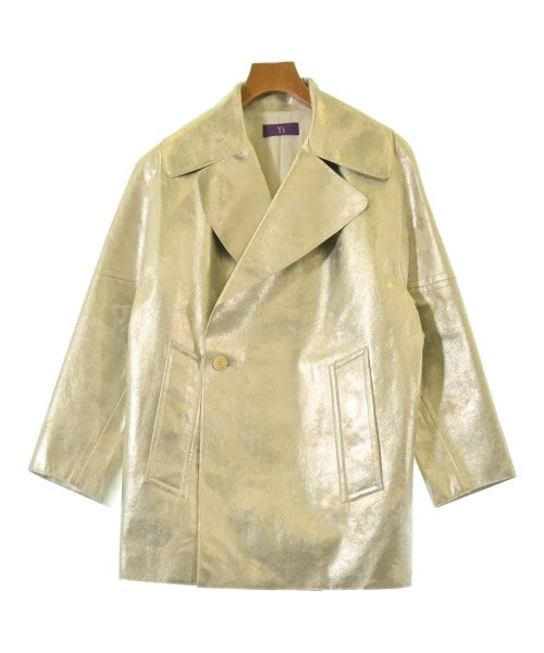 [Brand] TAKESHI KOSAKA by Y's Pink Label [Type] Women's [Condition] Rank: B Details: Stain around the neck [Color] Gold [Size] 2 (Medium) [Actual size] Width: 61cm Sleeve length: 76cm Length:75cm Material: 68% polyester, 32% polyurethane, (lining) 100% cupra [Country of origin] Japan [Other details] Season: Autumn-Winter Pockets: Yes Outside Pockets: 2 Translucency: None Fabric thickness: normal Lining: Yes Elasticity: None Gloss: Yes Opening and closing: button |
