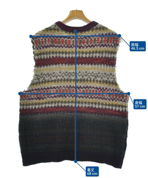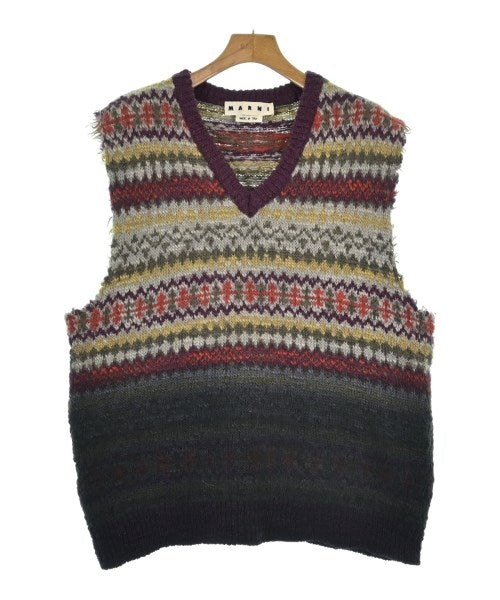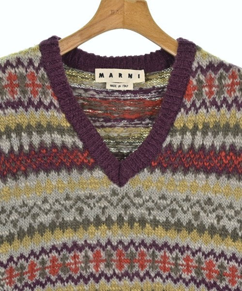 [Brand] MARNI [Type] Men's [Condition] Rank: A [Color] Purple x khaki x yellow etc. (all-over pattern) [Size] 54 (about XXL) [Actual size] Width: 57cm Shoulder width: 46.5cm Length:68cm [Material] 100% wool [Country of origin] Italy [Comment] This knit vest is made of wool. It features a nostalgic knit pattern. It will be a great accent piece for any outfit. [Other details] Season: Autumn-Winter Pocket: None Translucency: None Fabric thickness: normal Lining: None Elasticity: Yes Gloss: None Opening and closing: None Neck: V-neck Pattern: patterned Gauge: Medium Gauge |